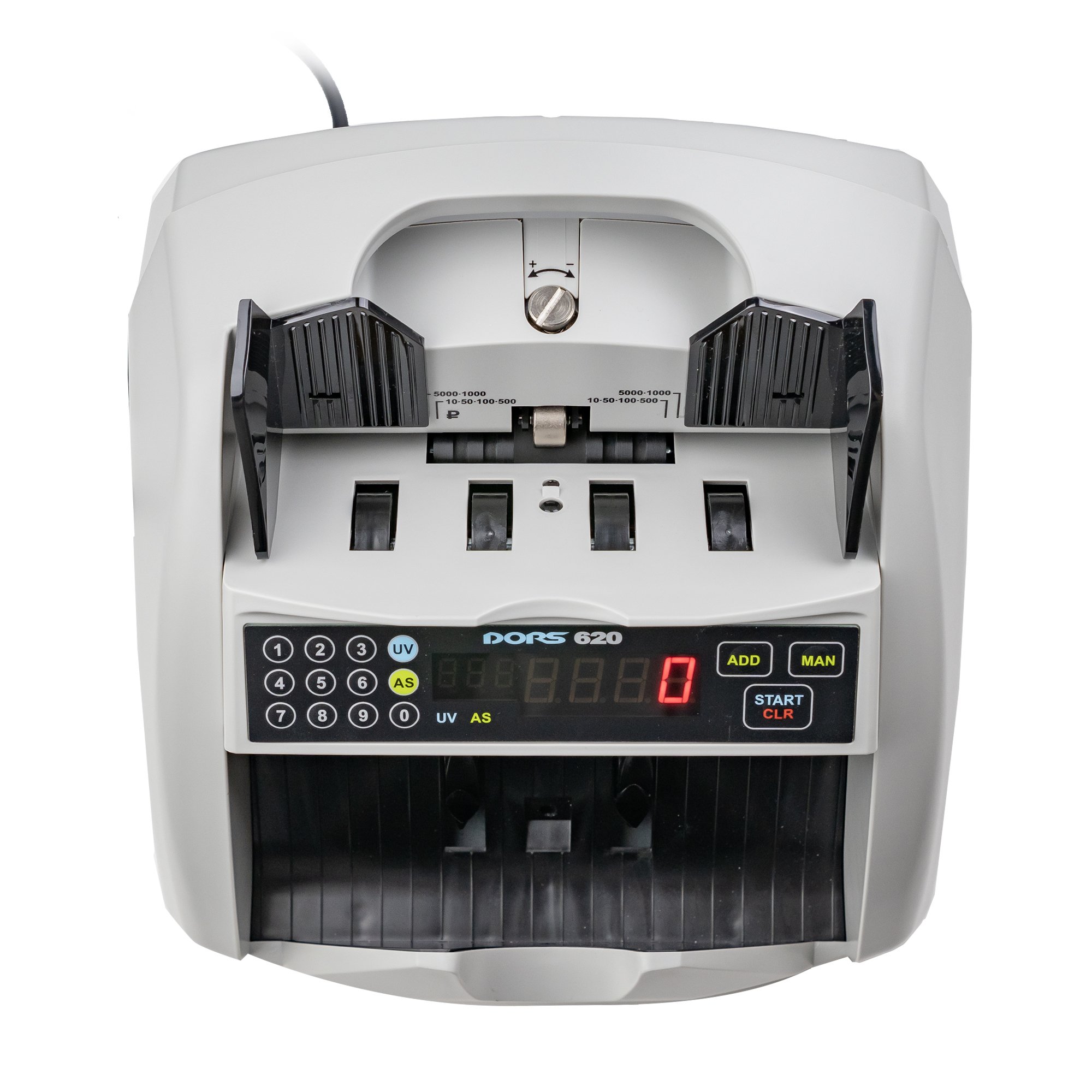 The use of metal rather than plastic frame is the basis of the stable operation of the banknote counter for many years. During operation the machine vibrates, and thus all the elements vibrate inside. If the frame is undurable, as the time passes the micro gaps appear, the axes are shifted relative to the initial position, thus leading to accelerated rubbing of rollers and belts. Such machines require more frequent service maintenance. You will avoid these problems while using DORS 620.