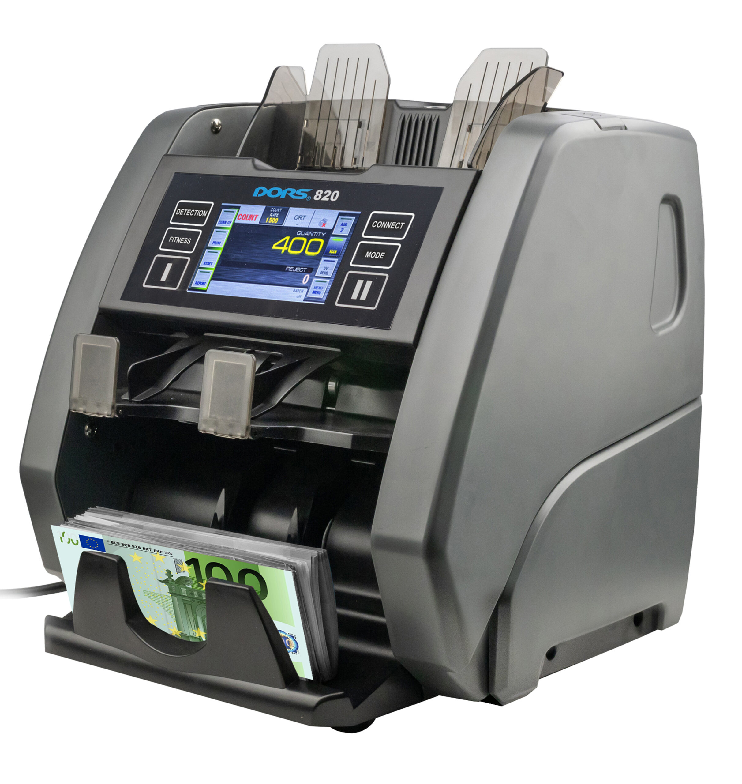 It’s the main mode of the DORS 820: it counts different denominations of single currency (MIX mode) or several currencies together (MULTI mode). As a result of the counting, you can see a report broken down by currencies and by denominations.