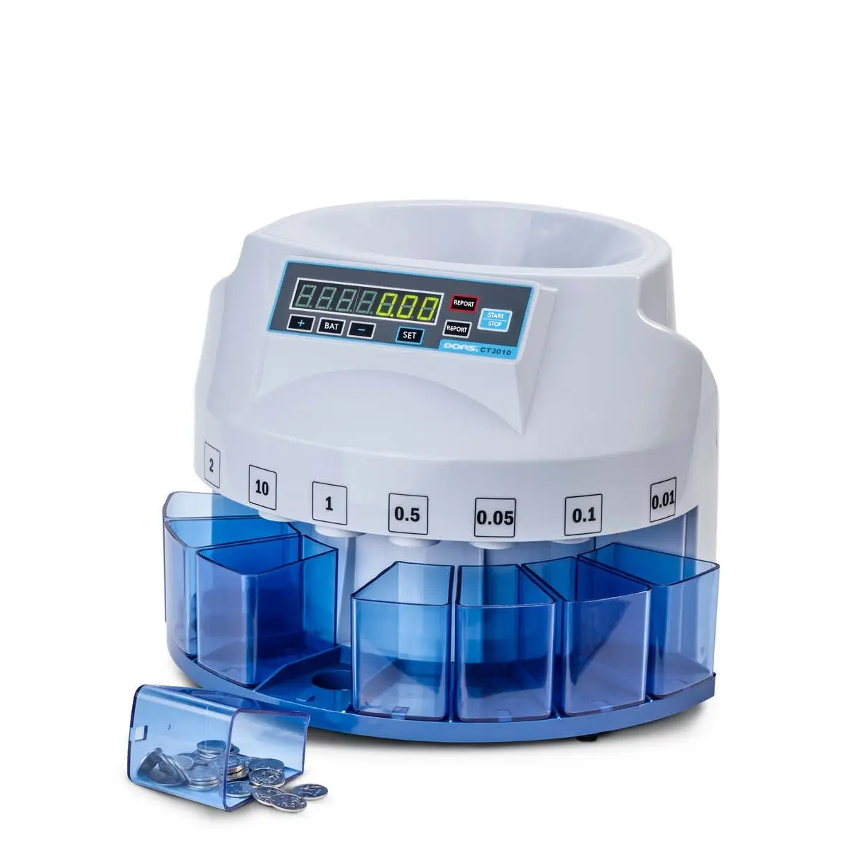 DORS CT3010 counts all coin denominations without special settings. It allows to set the batch size of each stacker (denomination) independently.